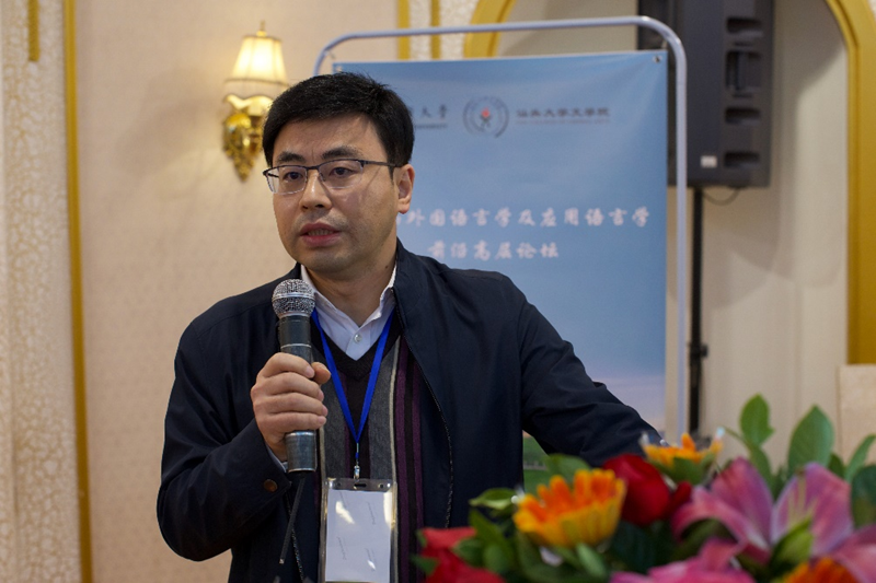 广东外语外贸大学国际商务英语学院副院长、国际韩礼德研究学会副会长胡春雨教授基于多年对功能语言学语篇分析的深入研究,对融合了系统功能语言学的语域分析与语料库语言学的语域特征多维分析(MDA)在语篇分析中的应用做了详细论述。胡春雨教授对中美企业社会责任报告总裁致辞进行了多维分析,为提升我国企业对外传播质量和有效性及企业社会责任报告语类的教学提供了有益指导。面对参会的青年学者,胡春雨教授分享了科研心得,提出应把80%的精力投入到某一学科领域20%的研究中去,引起了在场专家学者的强烈共鸣。